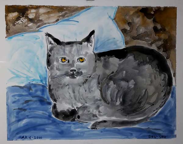 HOME | "Shu-Shu sul letto" - cm 30x24 - ecoline su carta lucida |